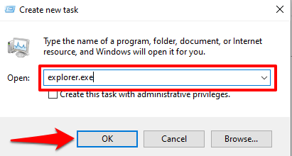 Tipo explorer.exe na caixa de diálogo e clique em Está bem.