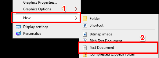 - Clique com o botão direito do mouse em uma área vazia da área de trabalho. Clique em جديد Então selecione documento de texto.