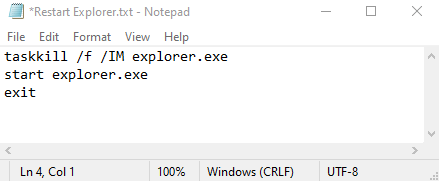 Reinicie o Explorador de Arquivos usando o arquivo BAT.