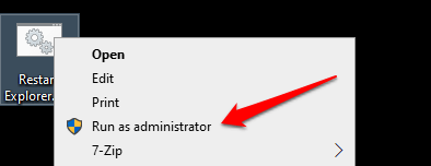 Para usar o arquivo BAT recém-criado para reiniciar o Windows Explorer, retorne à área de trabalho, clique com o botão direito do mouse no arquivo e selecione Executar como administrador.