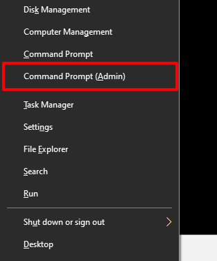 1. Clique com o botão direito do mouse no ícone do menu Iniciar e selecione Prompt de comando (Administrador).