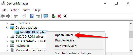 Expanda uma categoria Adaptadores de vídeoClique com o botão direito do mouse no adaptador de vídeo/gráficos do seu computador e selecione Atualize o driver.