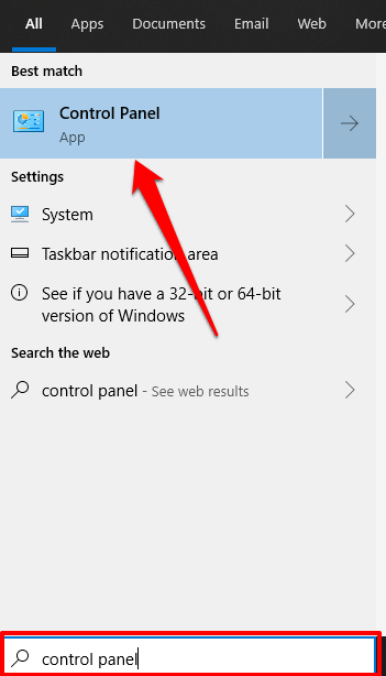1. Digite painel de controle na barra de pesquisa do Windows e clique em Painel de controle nos resultados.
