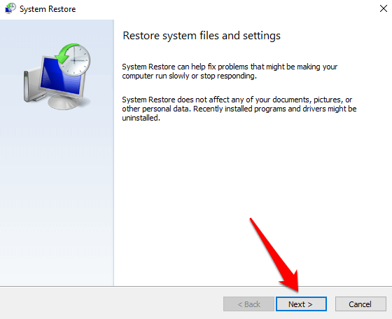 4. Na janela Restauração do Sistema, clique em Seguinte (A seguir) para continuar.