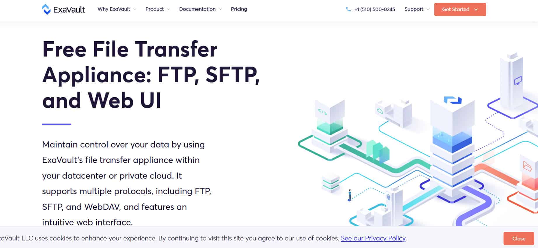 ExaVault é uma plataforma SaaS baseada na nuvem que oferece serviços FTP hospedados, acessíveis via navegador web ou integrados a ferramentas do dia a dia, como suítes de produtividade ou serviços de armazenamento em nuvem. Suporta transferências seguras de arquivos via SFTP, SCP e WebDAV, e ainda fornece widgets incorporáveis para upload/download de arquivos em websites através de sua API. Os arquivos podem ser compartilhados por meio de links seguros ou sincronizados entre dispositivos para usuários internos. O sistema também pode ser usado para backup e sincronização de armazenamento em nuvem. Graças ao seu design de fácil integração, o ExaVault se encaixa perfeitamente em fluxos de trabalho existentes.